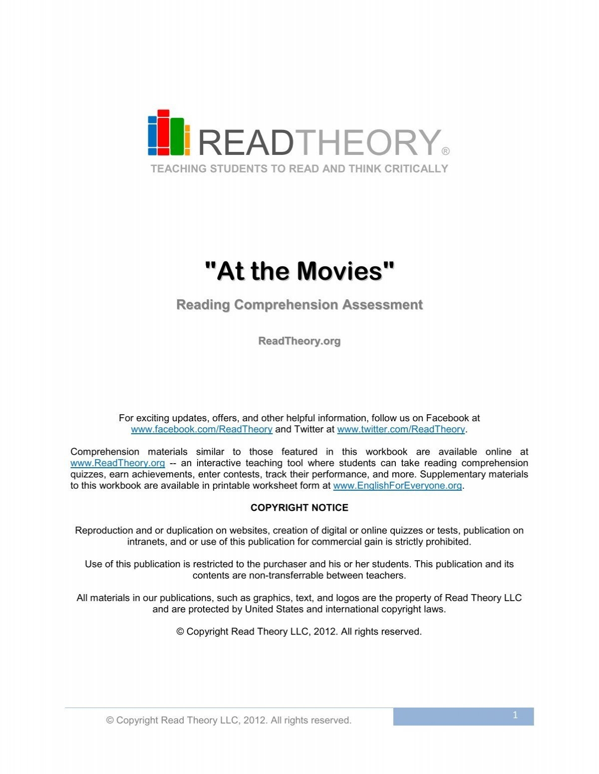 Reading Comprehension Worksheet Answers 2012