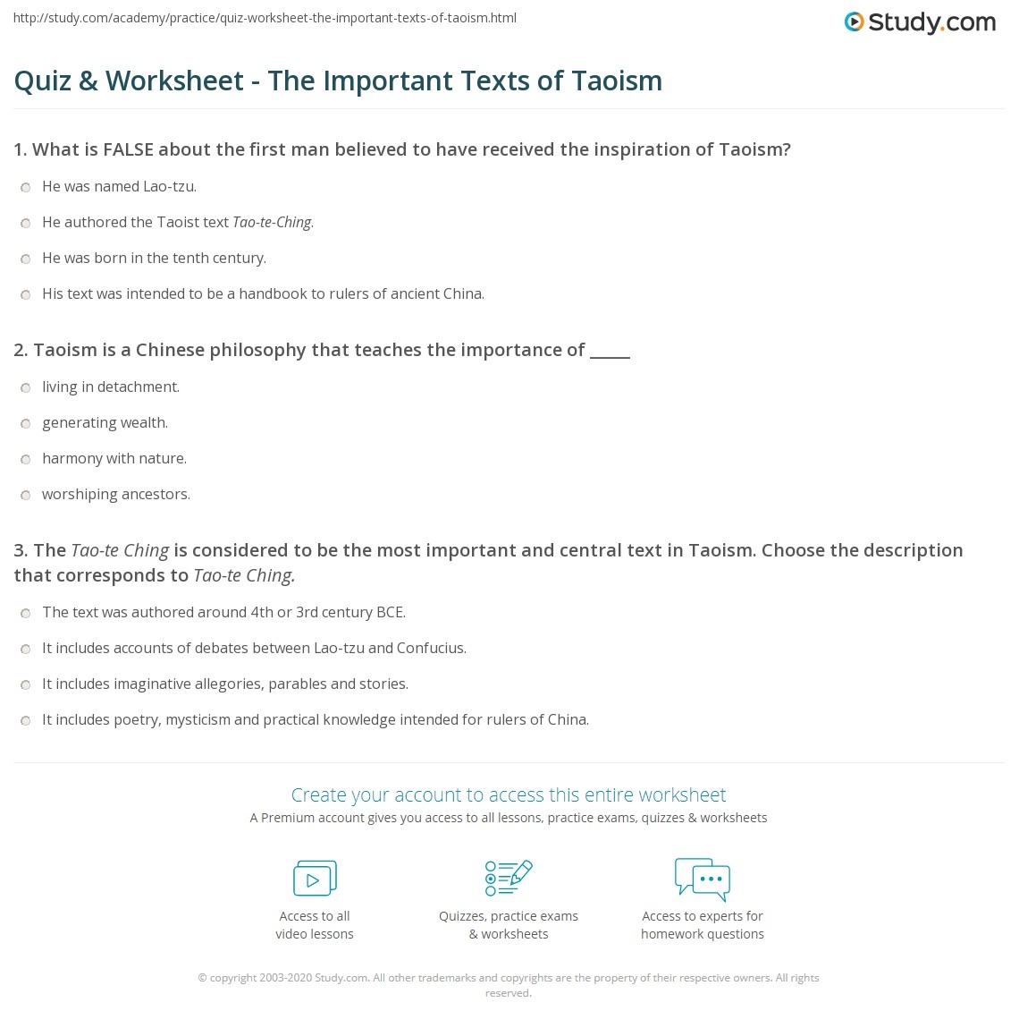 Quiz U0026 Worksheet The Important Texts Of Taoism Study