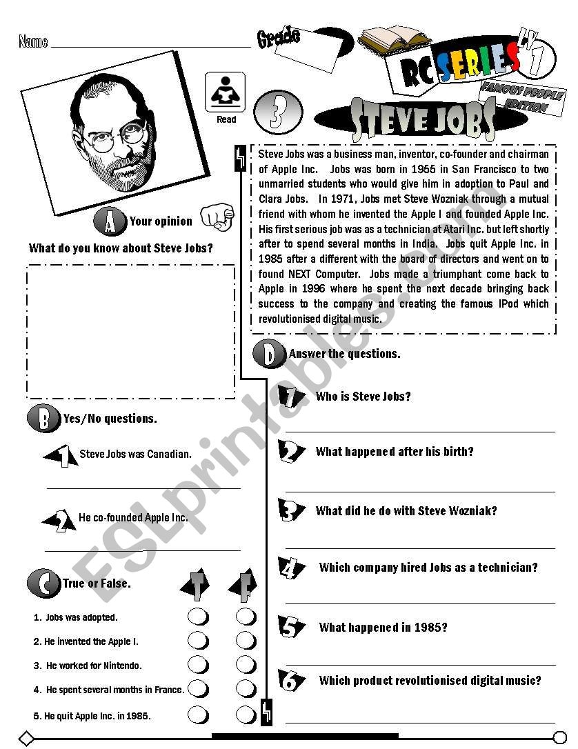Reading Comprehension Steve Jobs Biography ESL Worksheet By Liviatelles