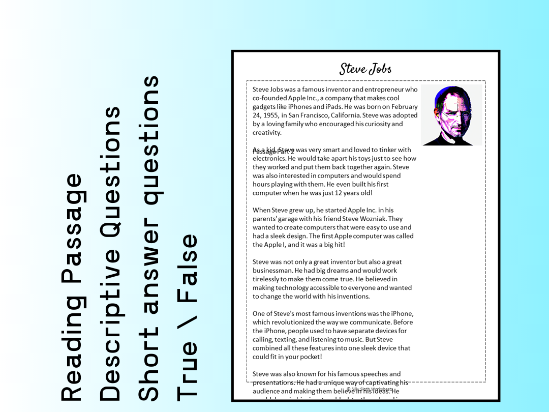 Steve Jobs Reading Comprehension Passage U0026 Questions Made By Teachers