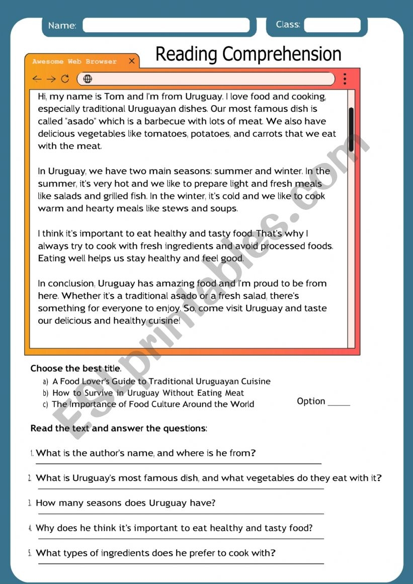 Reading Comprehension About Food ESL Worksheet By Demeter2023