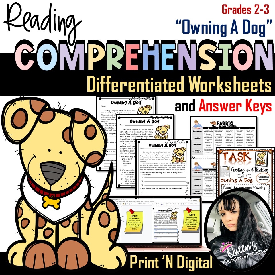 Reading Comprehension Packet Owning A Dog Print And Digital Classful