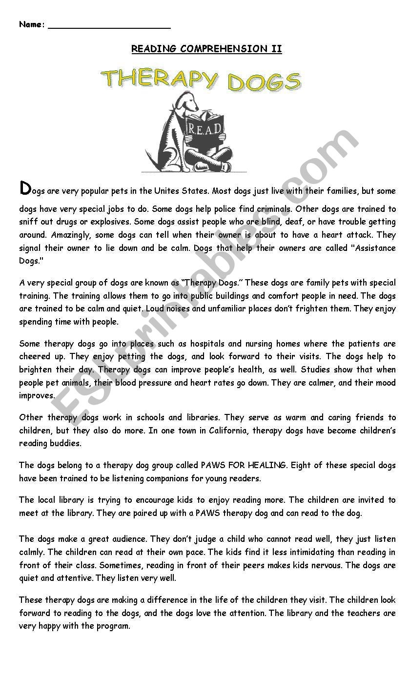 Dogs Reading Comprehension Passage Printable Worksheet Teaching Resources