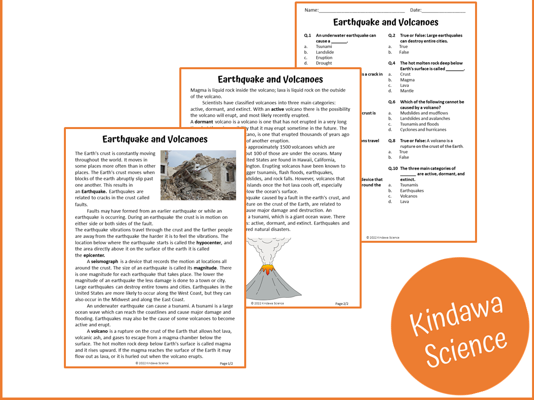 Earthquake And Volcanoes Reading Comprehension Passage And Questions PDF Teaching Resources