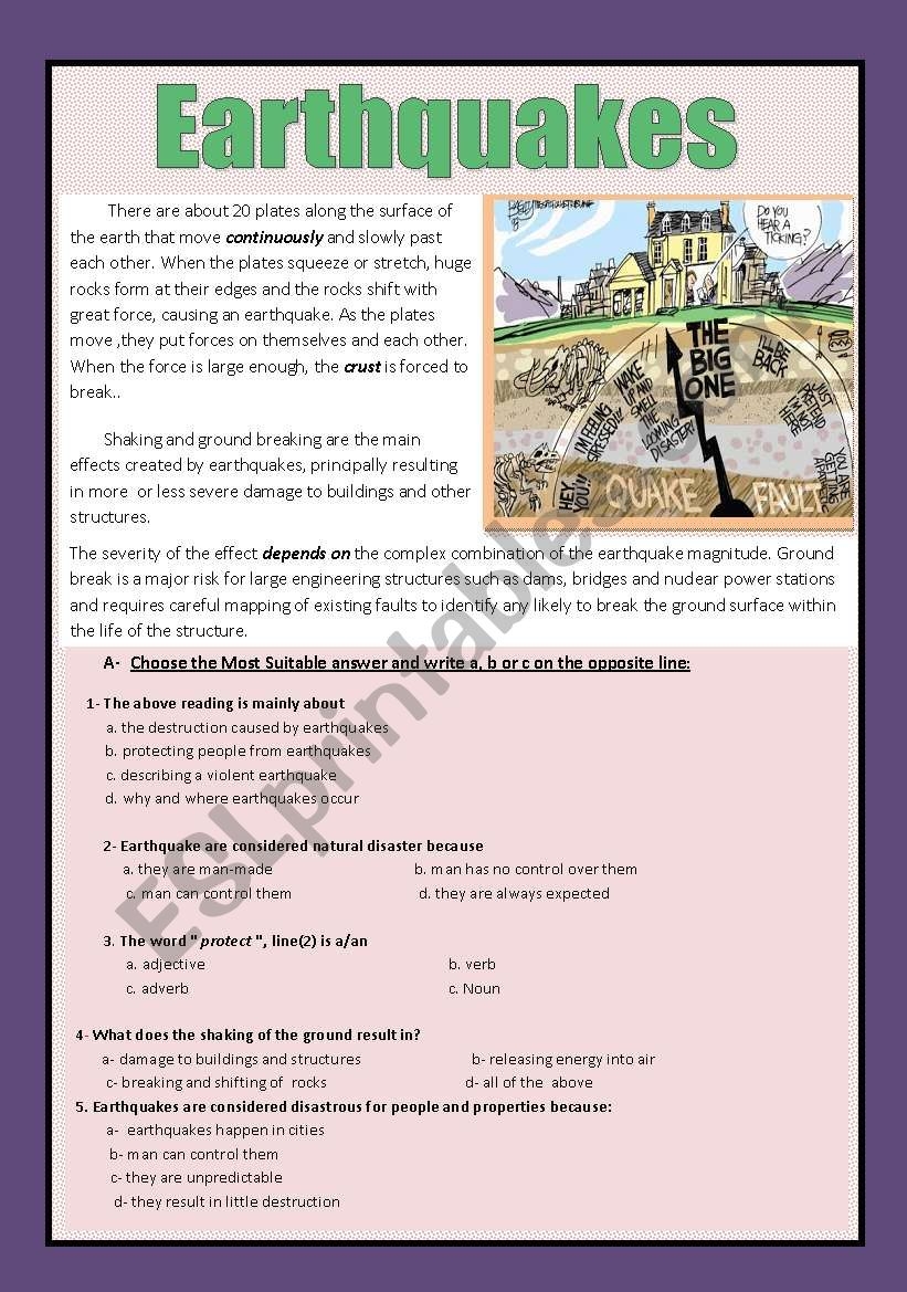 Reading Comprehension Earthquakes ESL Worksheet By Aaisha86