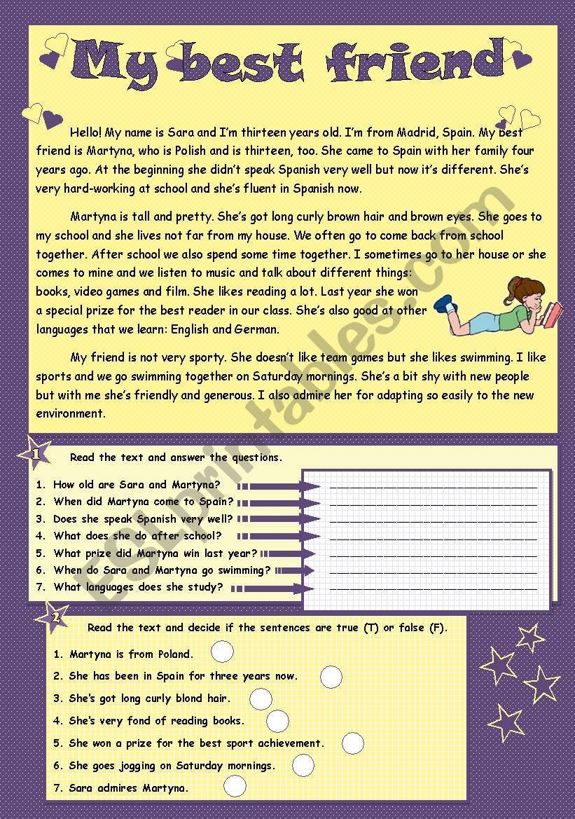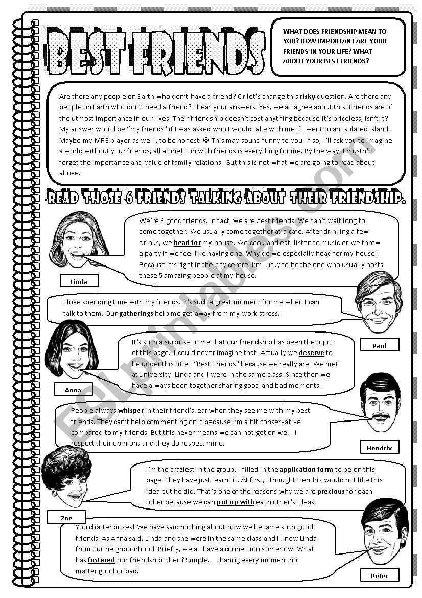 BEST FRIENDS reading Comprehension 3 page ESL Worksheet By Mr dgdln