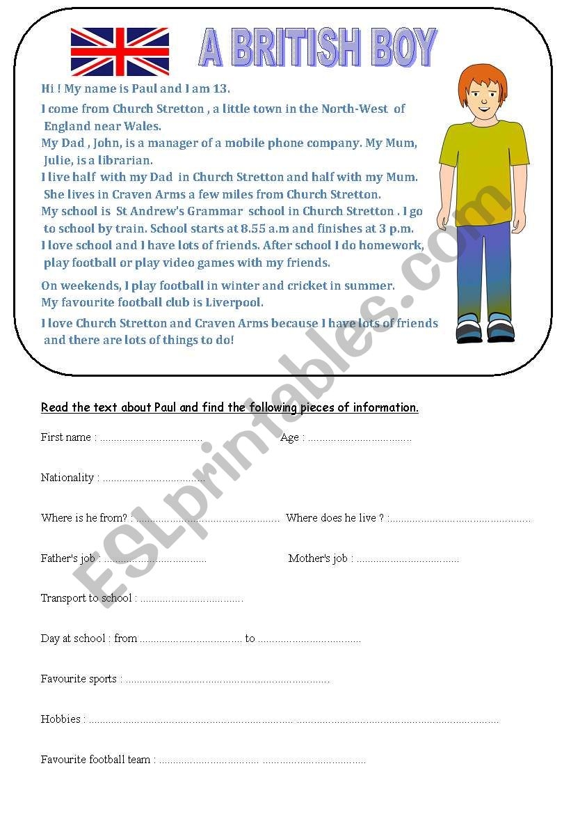 Reading Comprehension A British Boy ESL Worksheet By Faurfab