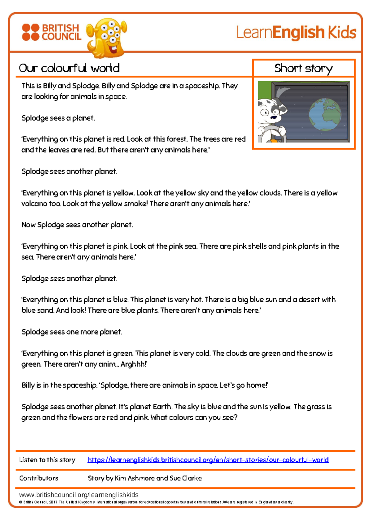 Short Stories Our Colourful World Transcript Britishcouncil learnenglishkids British Council Studocu