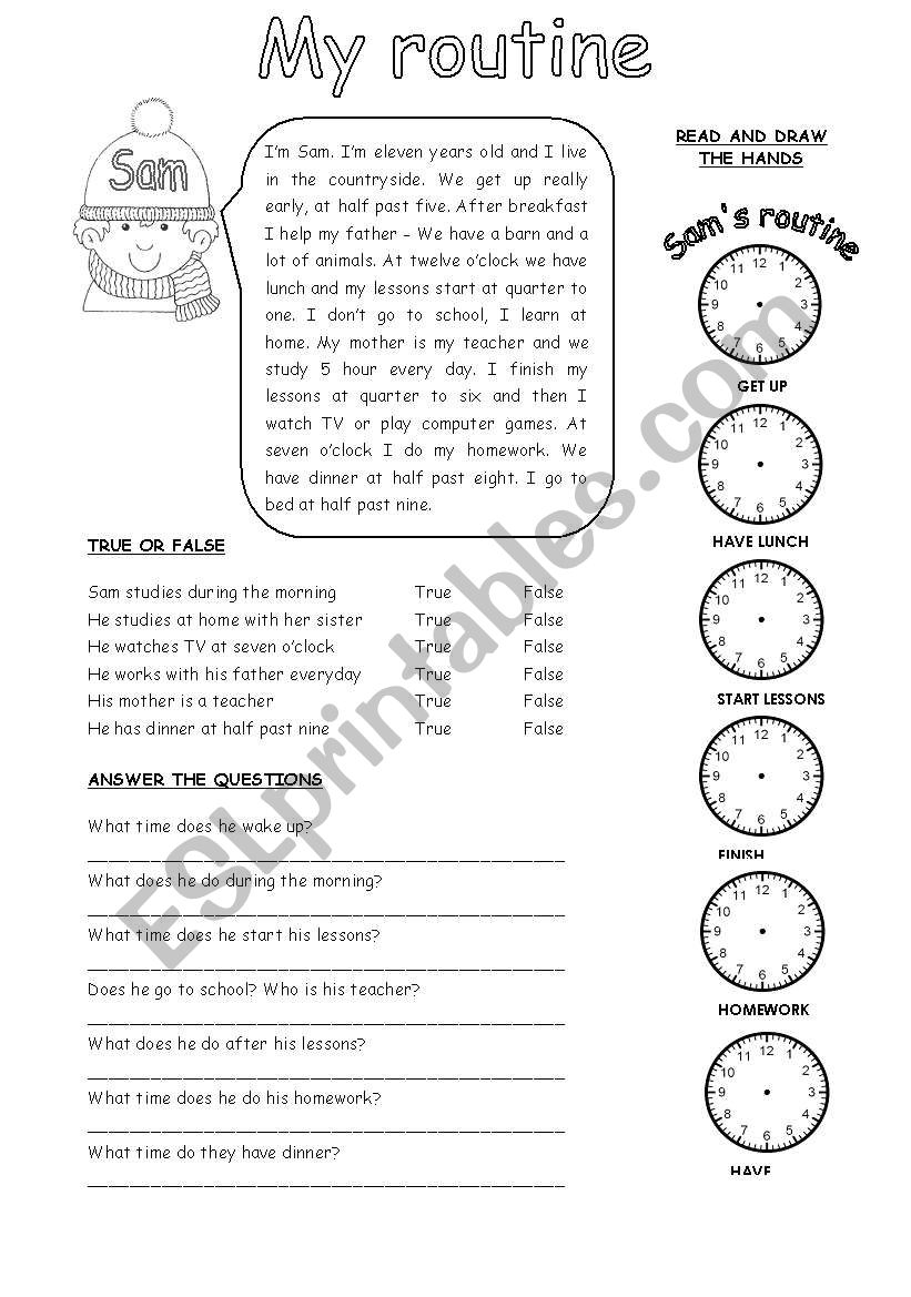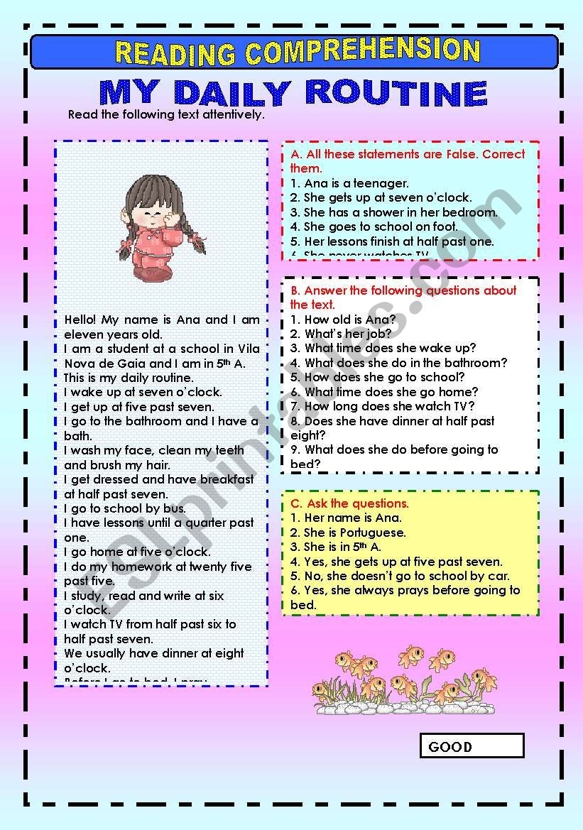 Daily Routine Reading Comprehension Worksheet Games4esl
