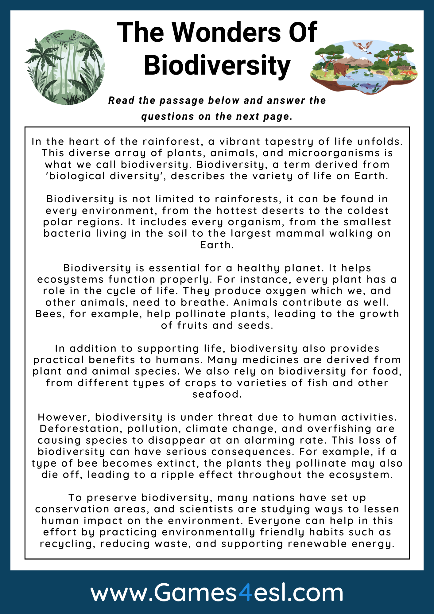 So why not give reading comprehension worksheets about ecosystems a try in your classroom? Your students are sure to enjoy the engaging content while learning valuable information about the world we live in.