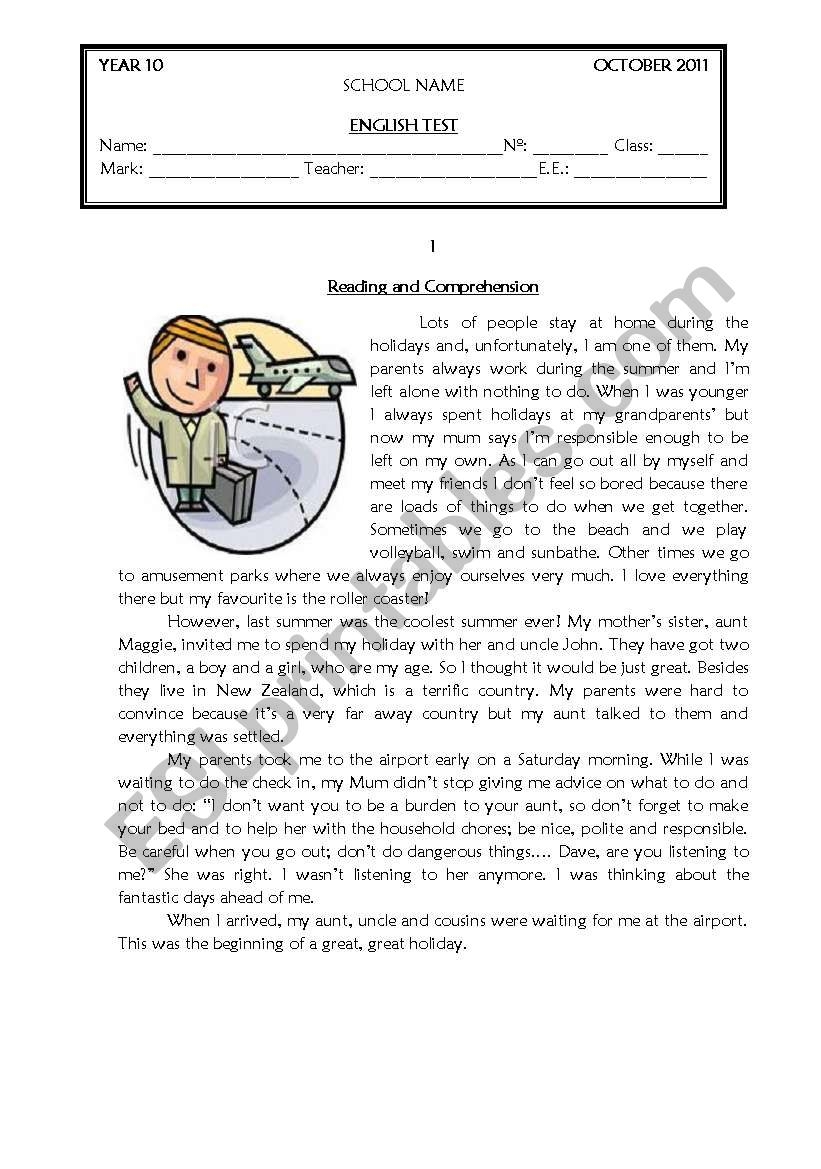 TEST GRADE 10 ESL Worksheet By Coasvaf