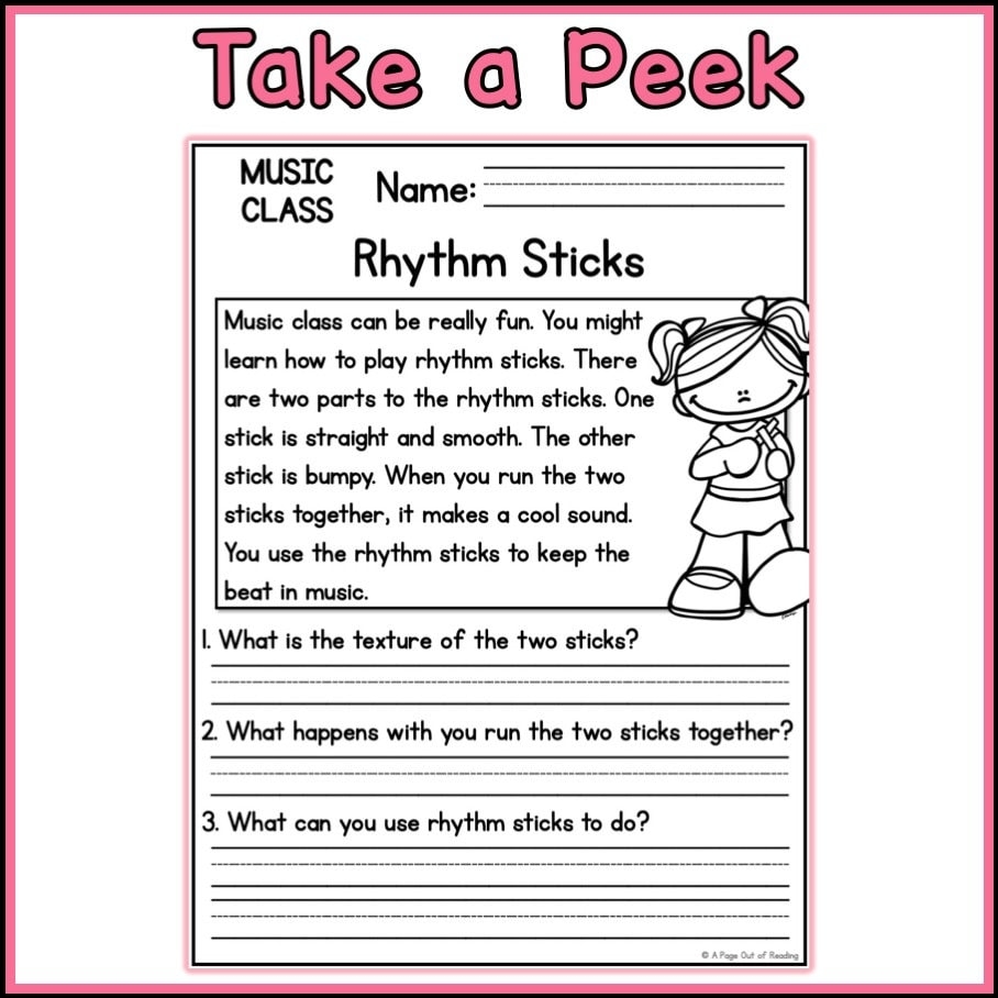 Music Class Reading Comprehension Passages And Questions Back To School Science Printable Worksheets Etsy
