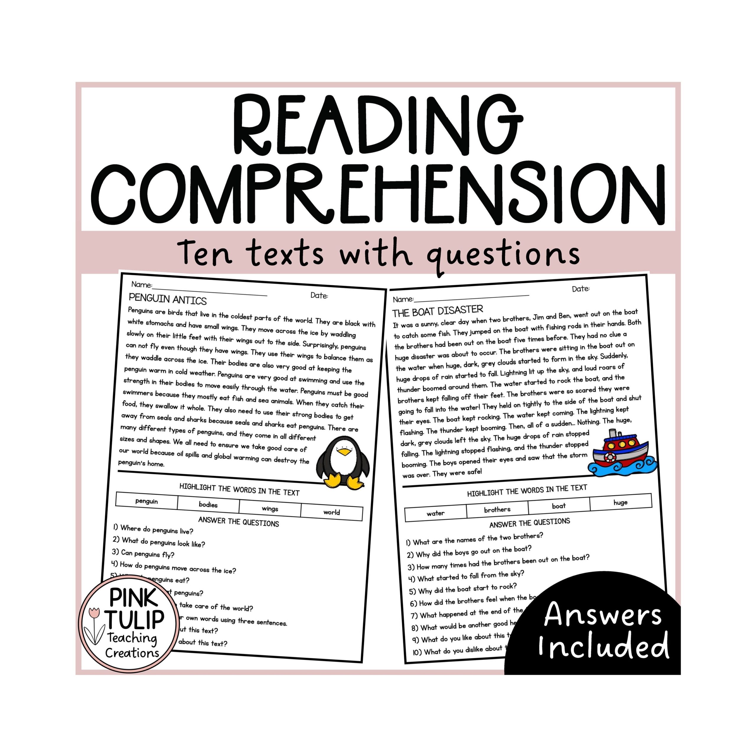 Ten Page Reading Comprehension Worksheet Pack Etsy UK