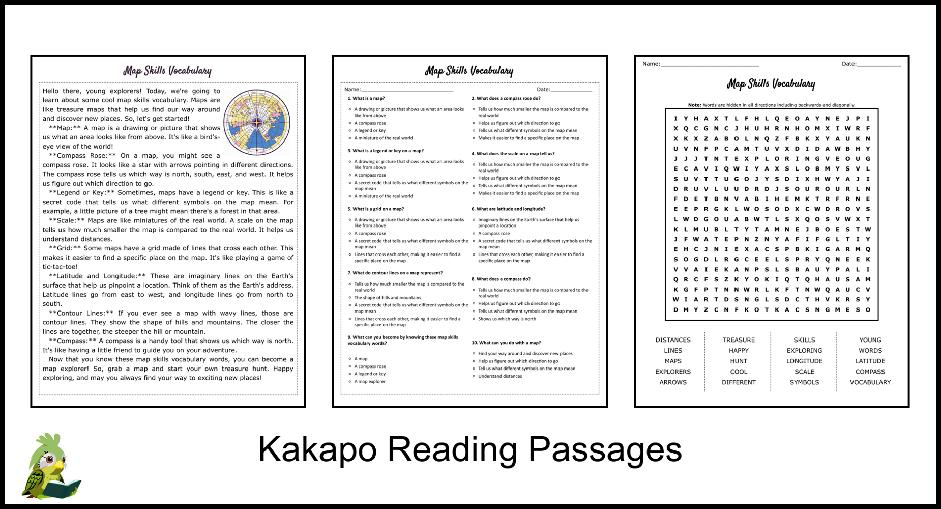 Map Skills Vocabulary Reading Comprehension And Word Search Teaching Resources