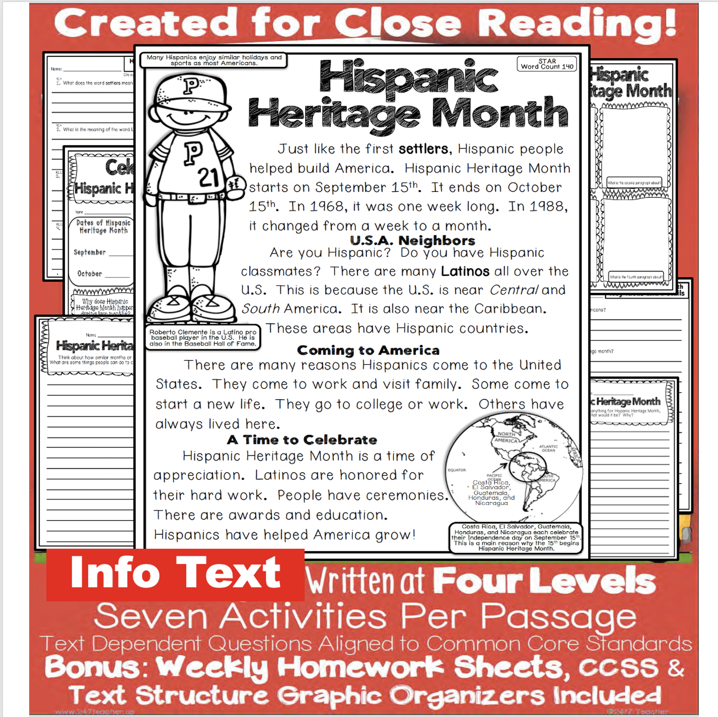 Hispanic Heritage Month Close Reading Leveled Passages U0026 Worksheet Activities PDF U0026 Google Slides 24 7 Teacher