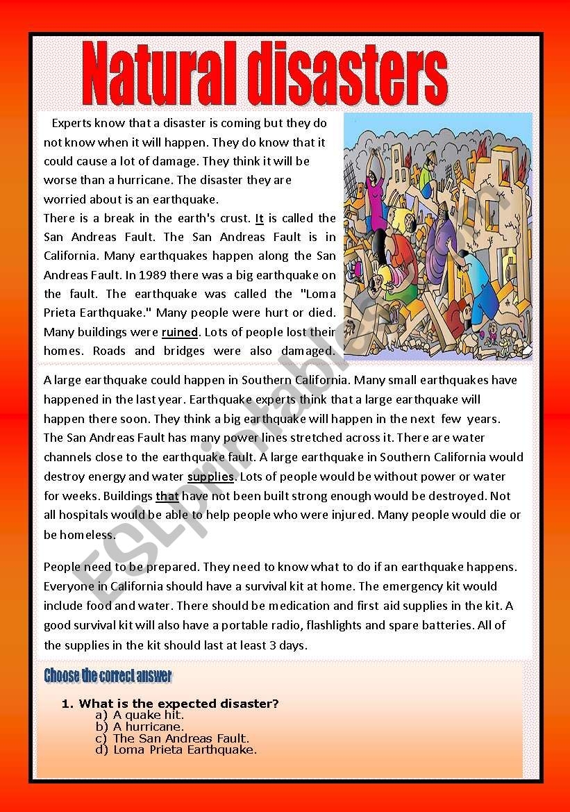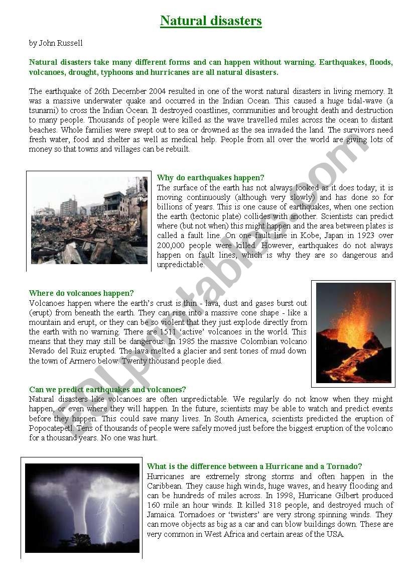 Reading Comprehension Natural Disasters ESL Worksheet By Aaisha86