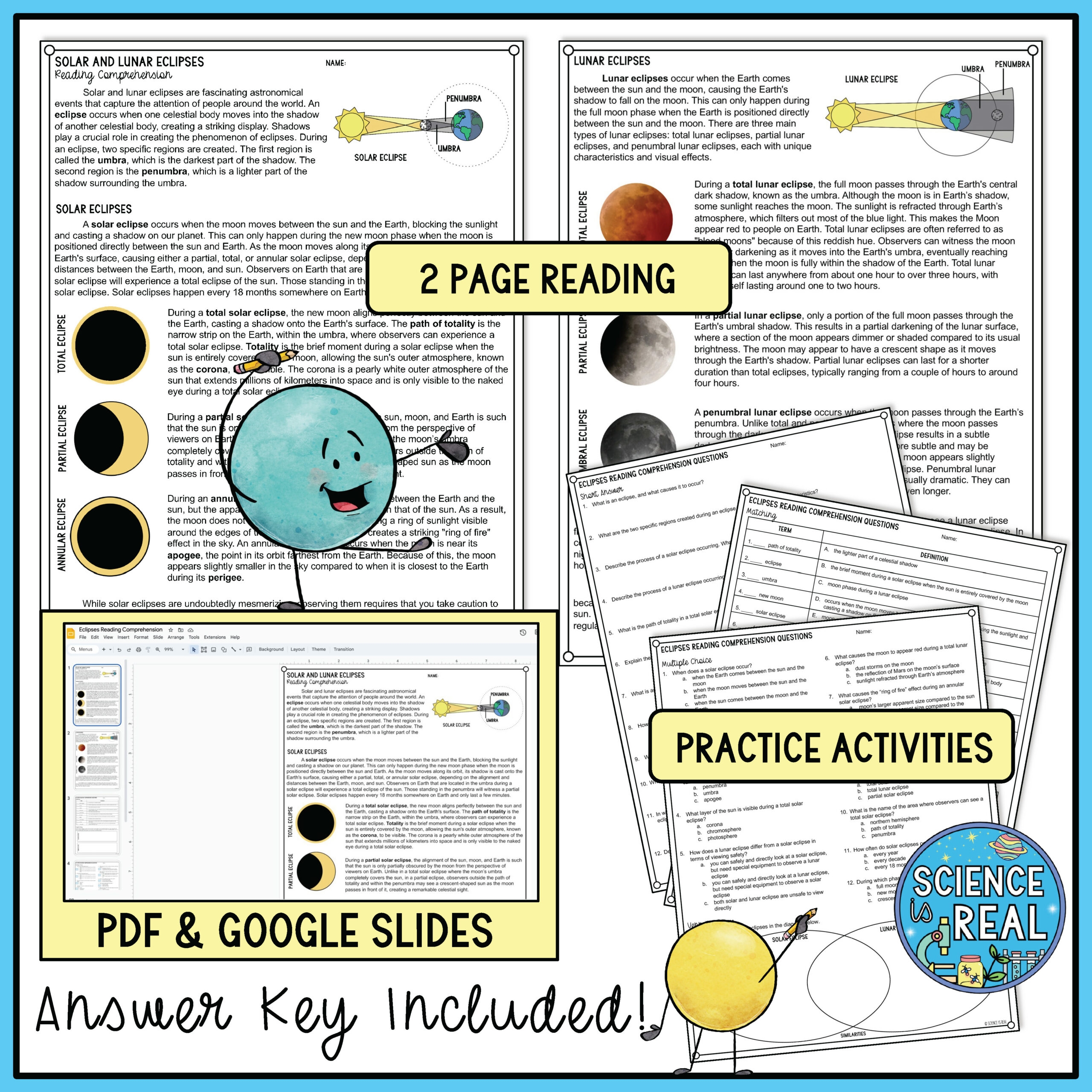 Solar And Lunar Eclipse Reading Comprehension Passage And Questions PDF Teaching Resources