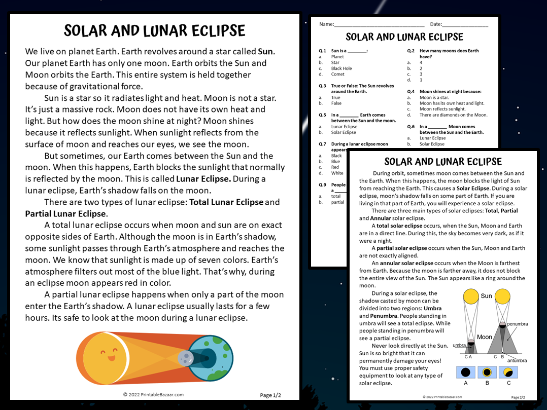 Do you want to improve your child’s reading comprehension skills while learning about eclipses? Look no further than reading comprehension worksheets on eclipses! These educational resources are a fun and engaging way to enhance your child’s understanding of this fascinating celestial event.
