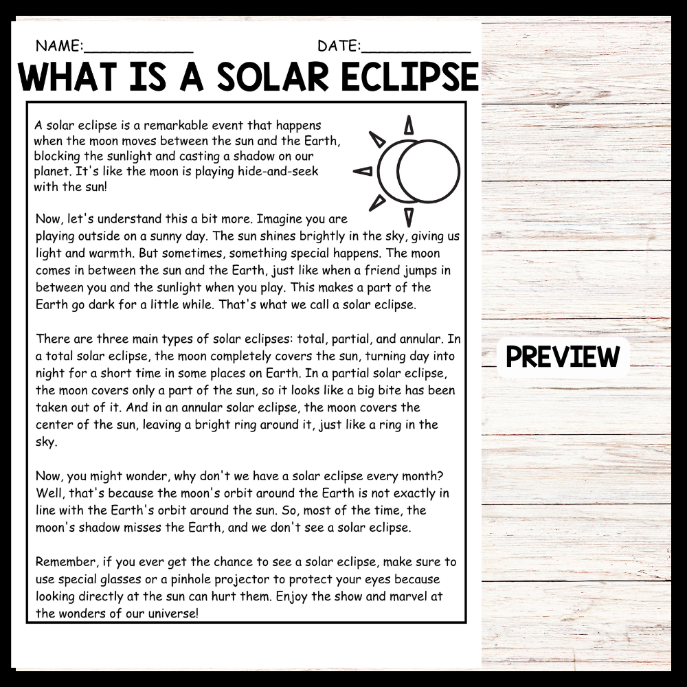 With these engaging and informative worksheets, your child will not only improve their reading comprehension skills but also gain a deeper appreciation for the beauty and mystery of eclipses. Don’t miss out on this fun and educational opportunity for your child!