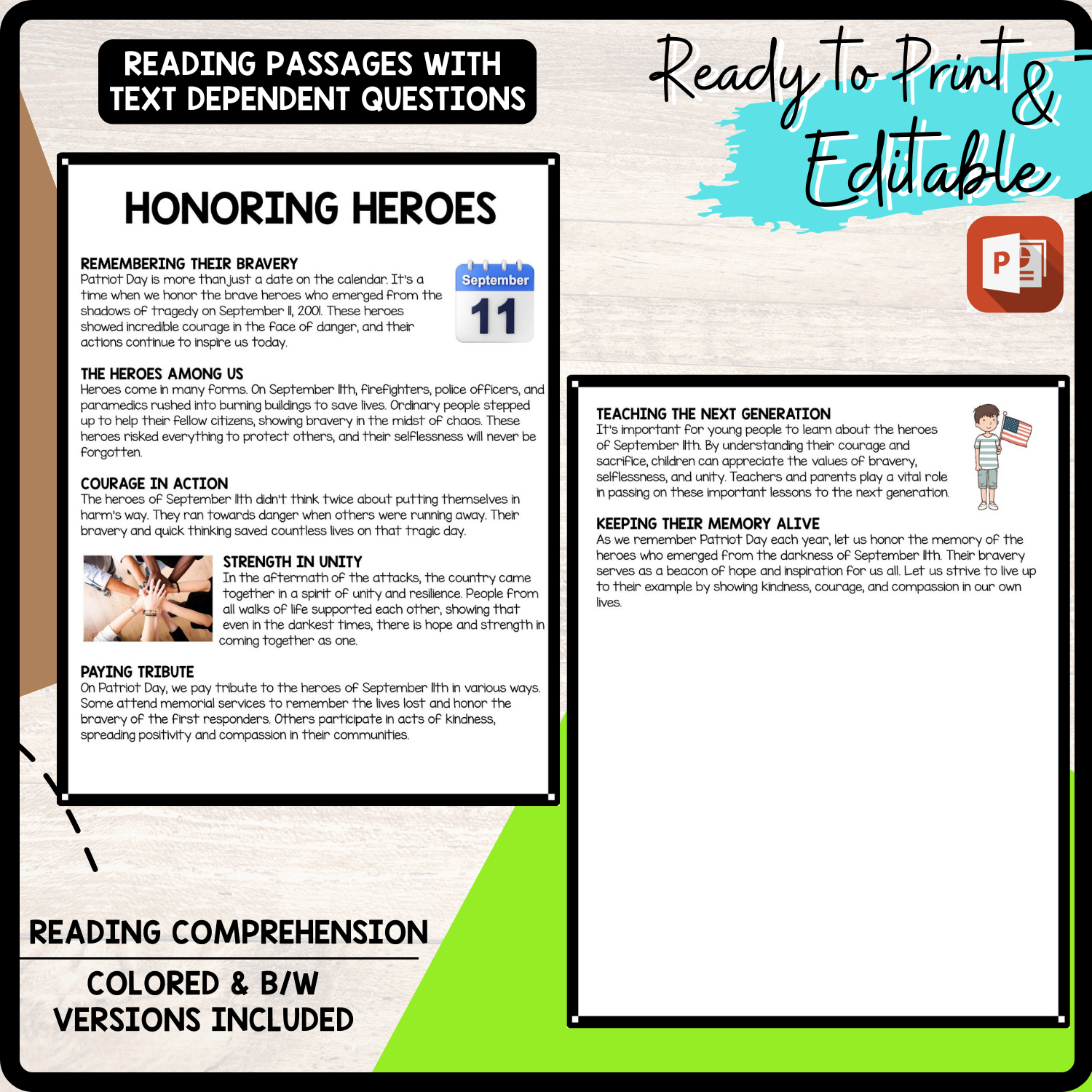 Honoring Heroes Reading Comprehension Worksheet Teachers Stock