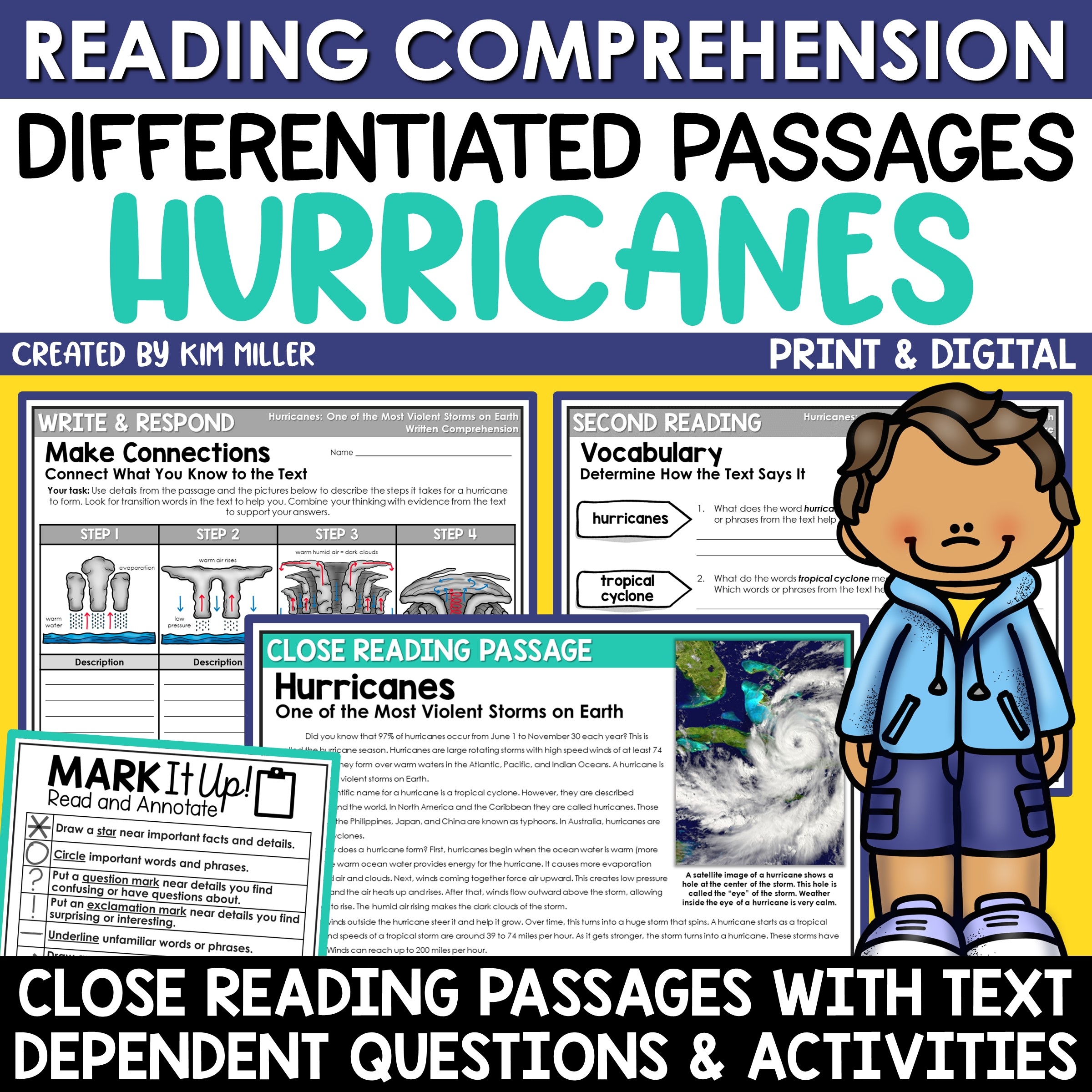 Hurricanes Natural Disasters Differentiated Close Reading Comprehension Passages A Love Of Teaching Kim Miller