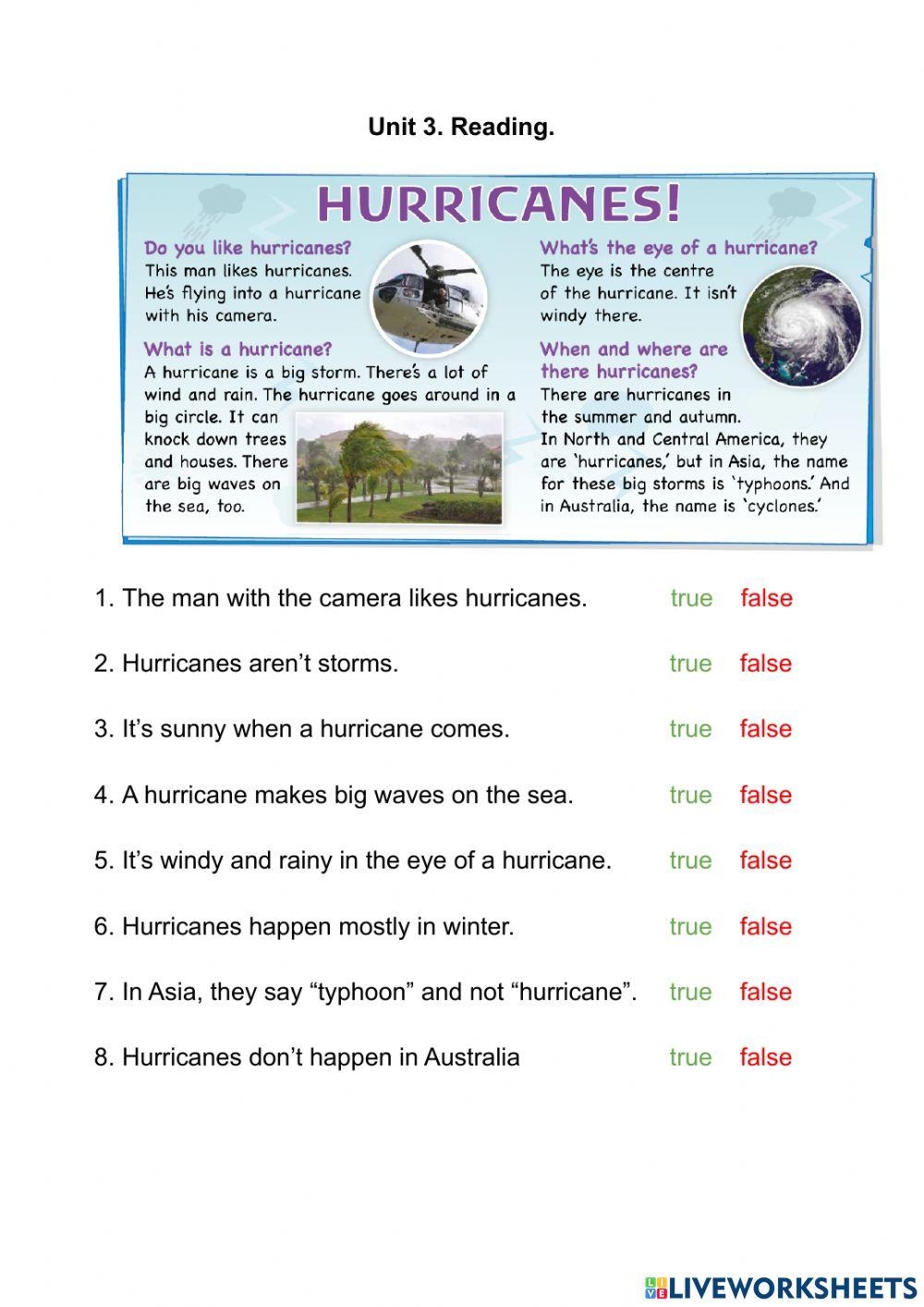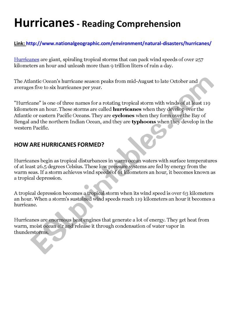 Hurricanes Reading Comprehension ESL Worksheet By Borotraj