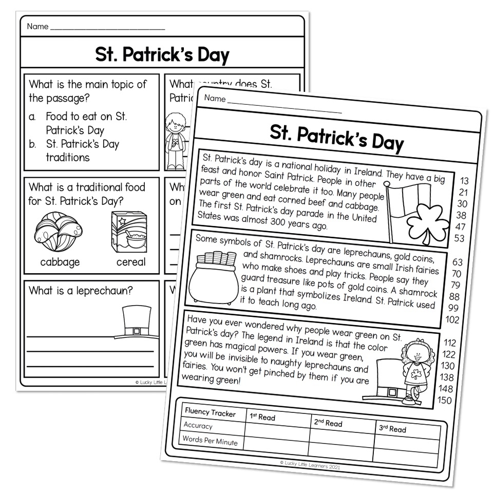 Spring Pack St Patrick s Day Reading Passage Lucky Little Learners