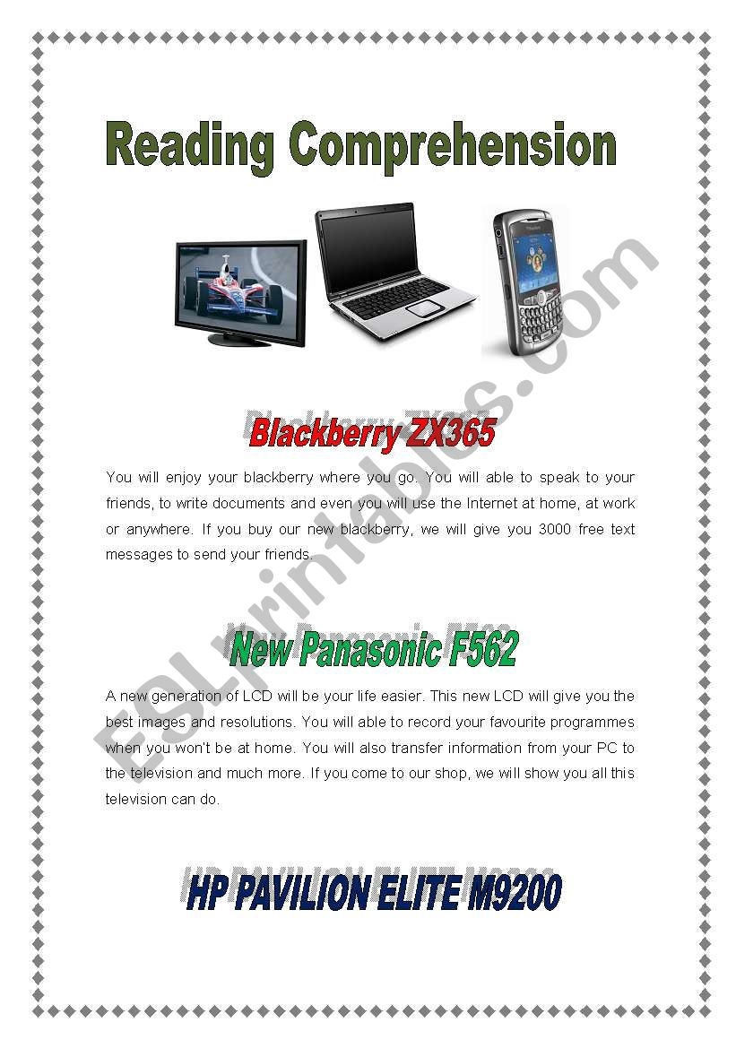 Reading Comprehension Worksheets Technology