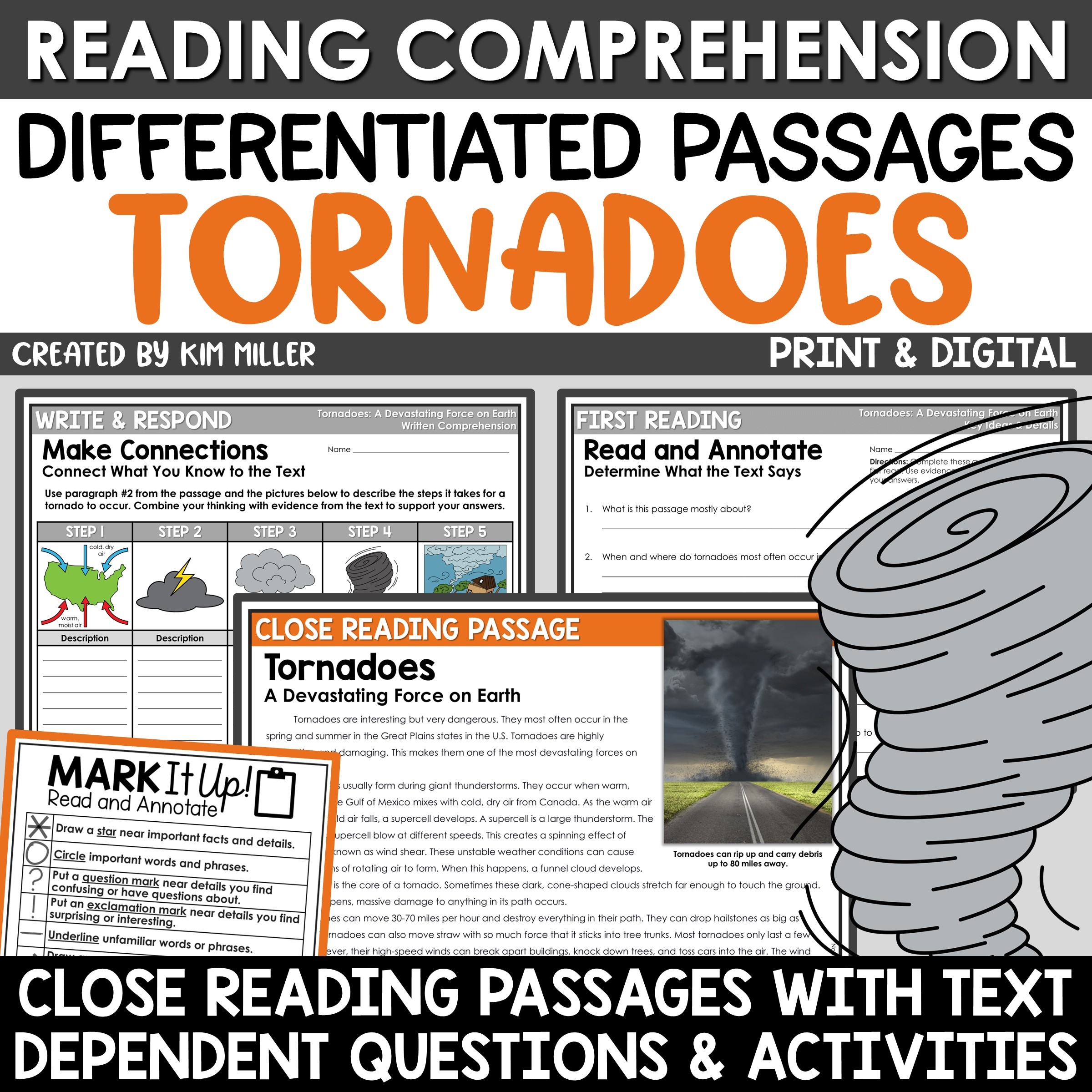 3rd 4th 5th Tornadoes Reading Comprehension Packet