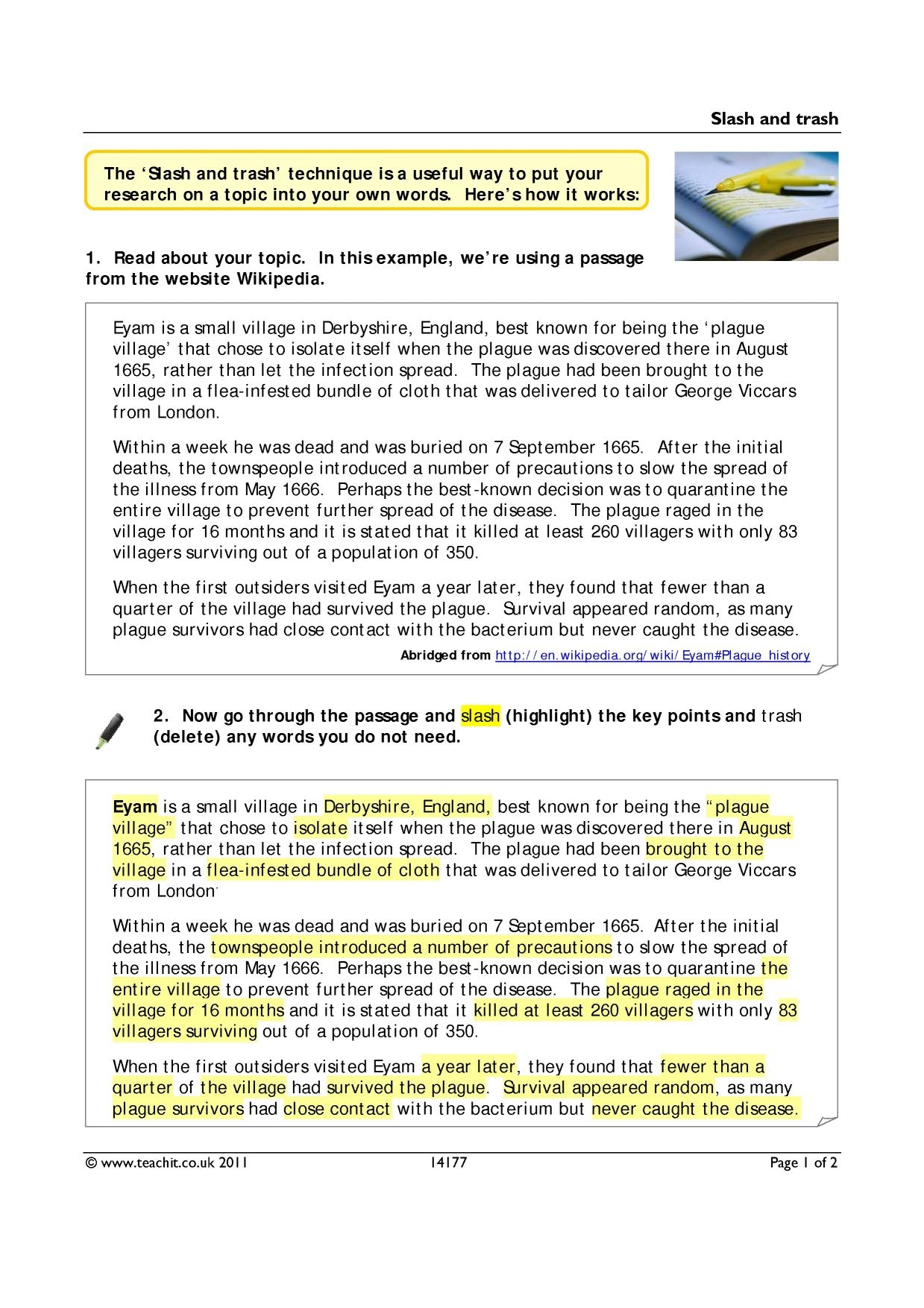 Note Making Activity KS3 4 English Teachit