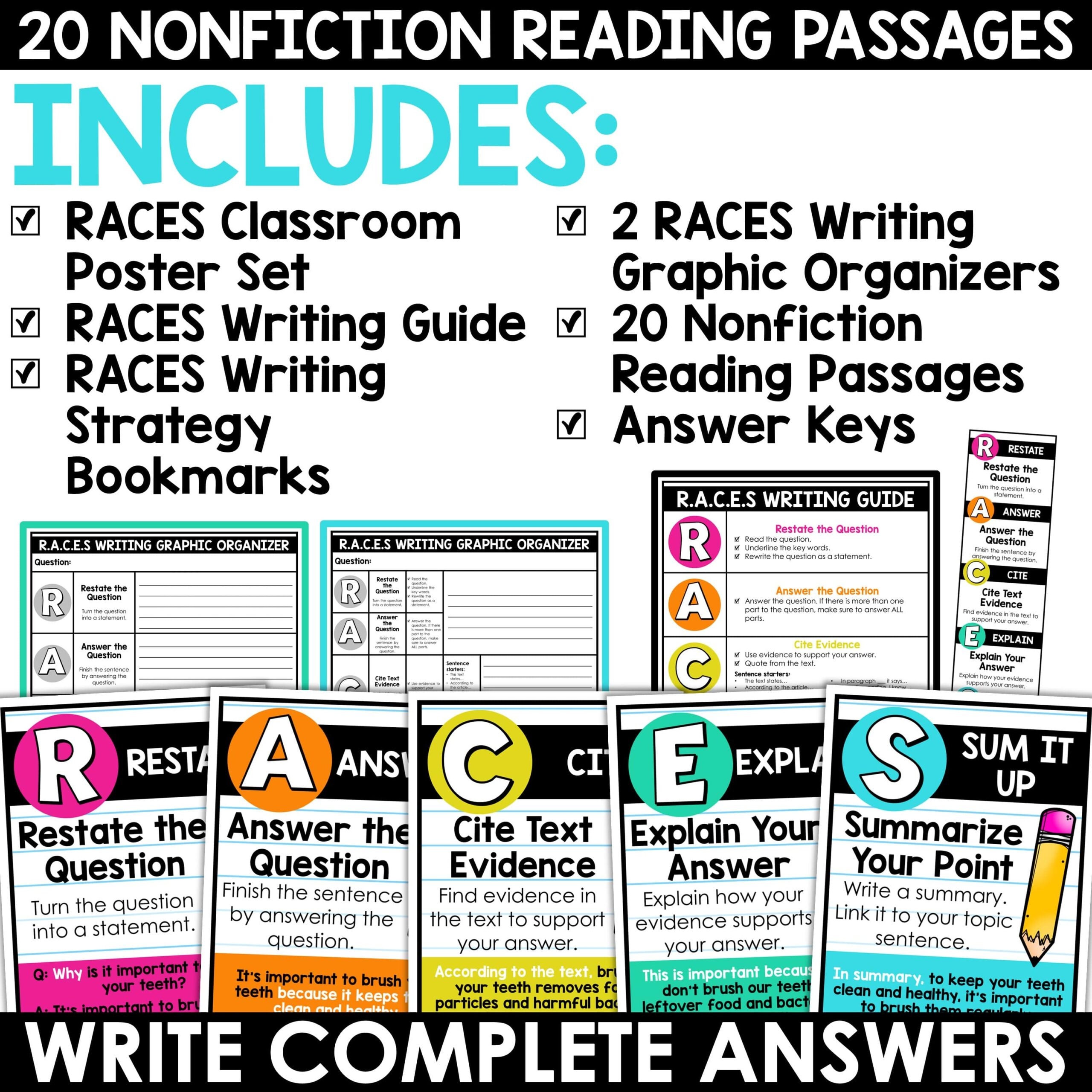 Citing Text Evidence Worksheets Reading Passages RACES Writing