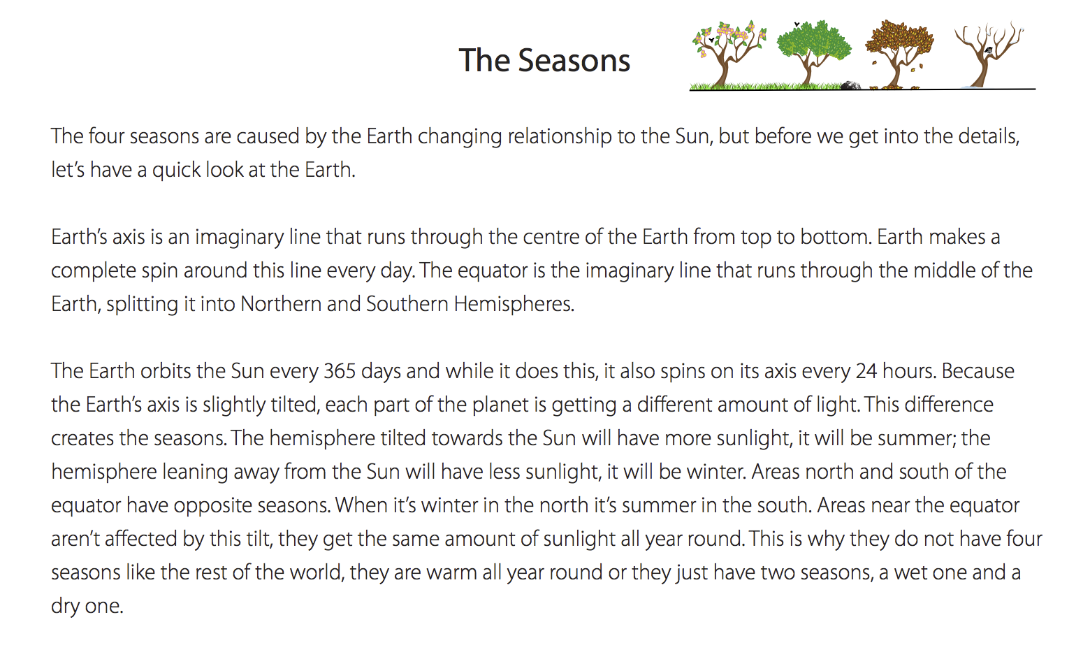 The Four Seasons Reading Comprehension Passage Printable Worksheet