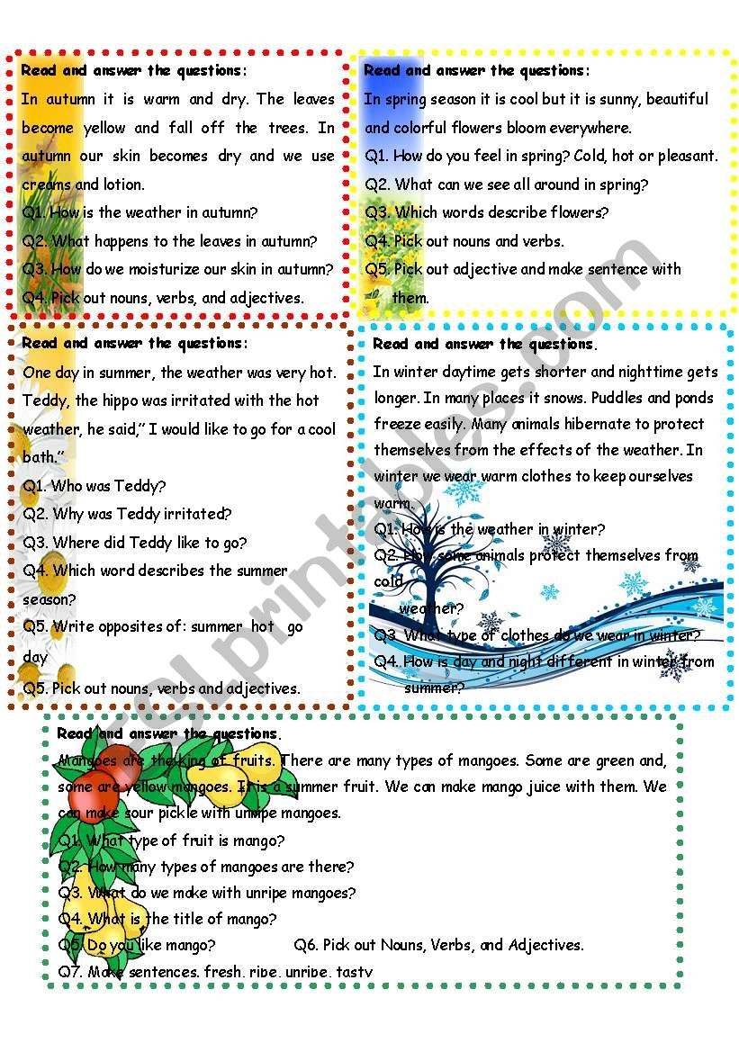 Reading Comprehension Seasons ESL Worksheet By Asmajabbar