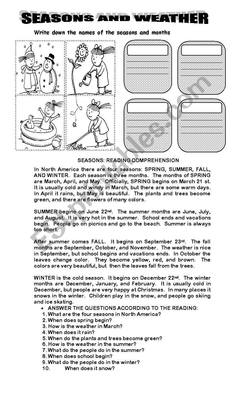 SEASONS READING COMPREHENSION ESL Worksheet By Natysalda