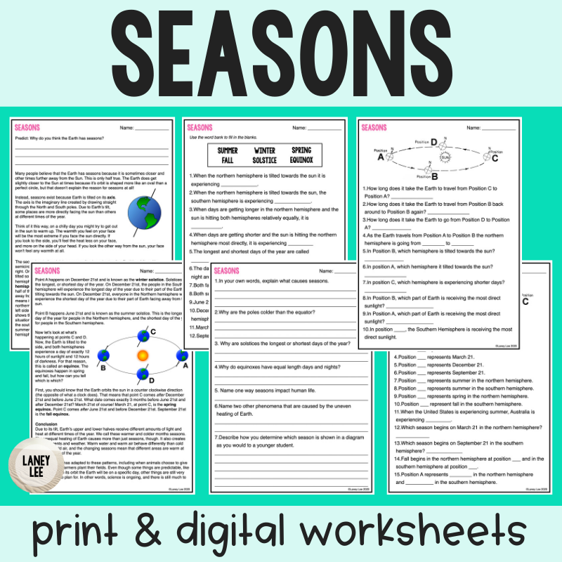 Seasons Reading Comprehension Worksheets Laney Lee