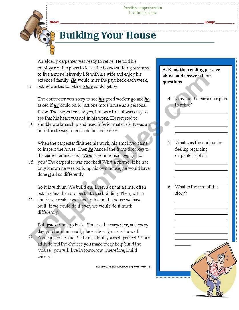 Reading Comprehension Worksheet Building A House Wise Story ESL Worksheet By Ibtisam1