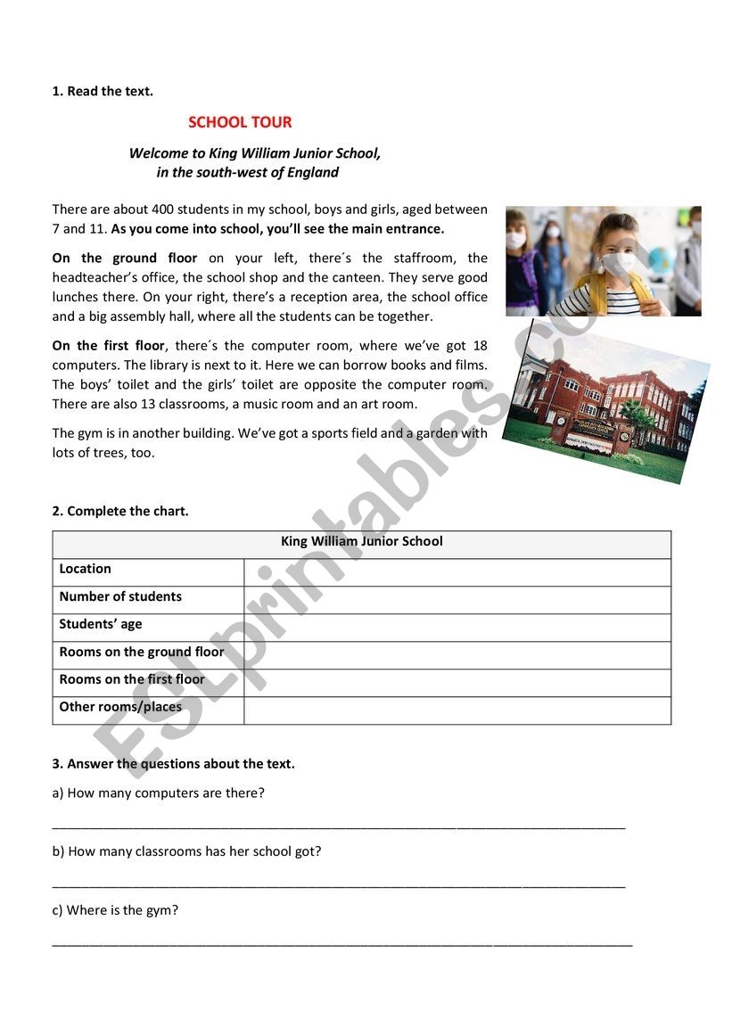 School Tour Reading Comprehension ESL Worksheet By Paulapaula