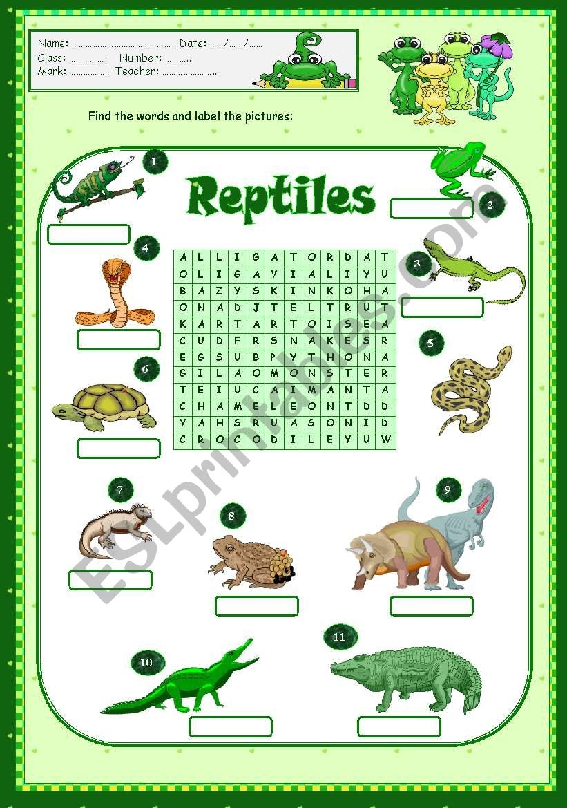 READING COMPREHENSION About Reptiles version 1 ESL Worksheet
