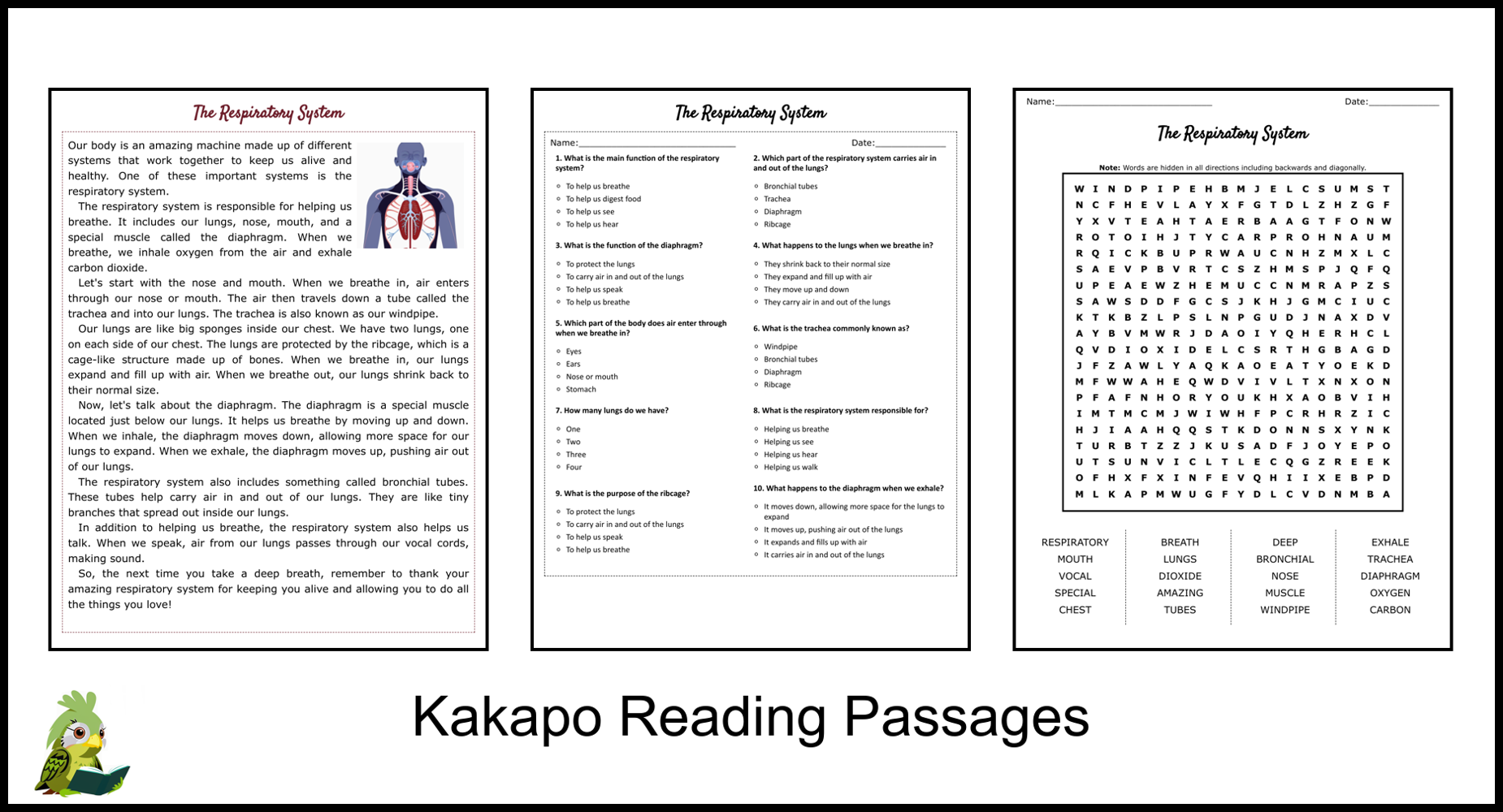 Respiratory System Reading Comprehension Passage And Questions PDF Teaching Resources