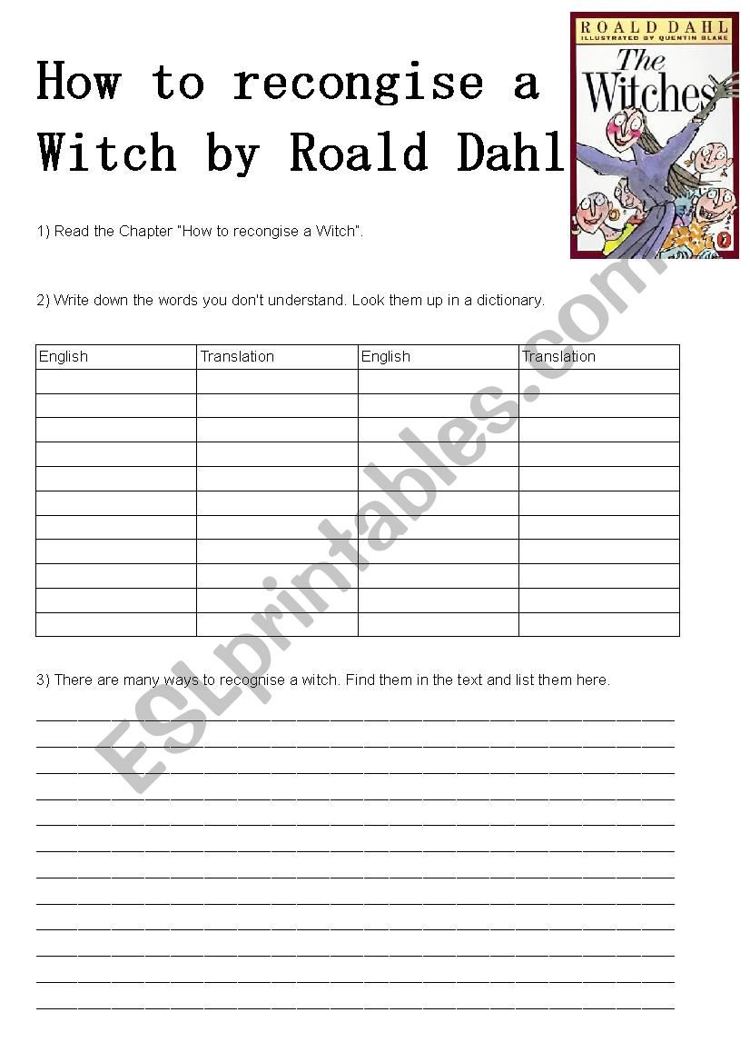 How To Recognise A Witch By Roald Dahl ESL Worksheet By Furbiza