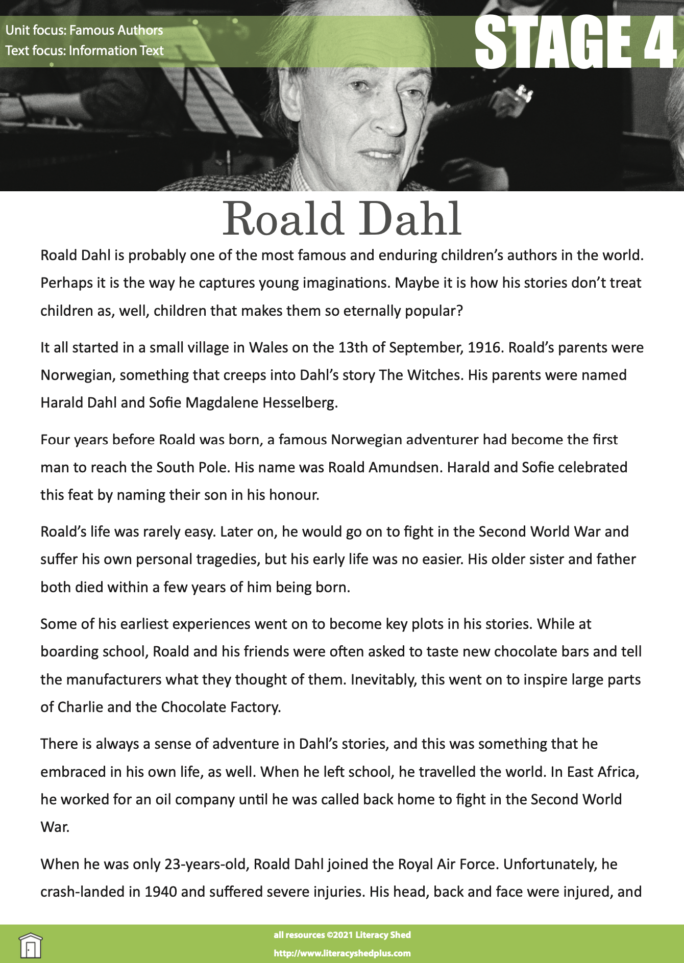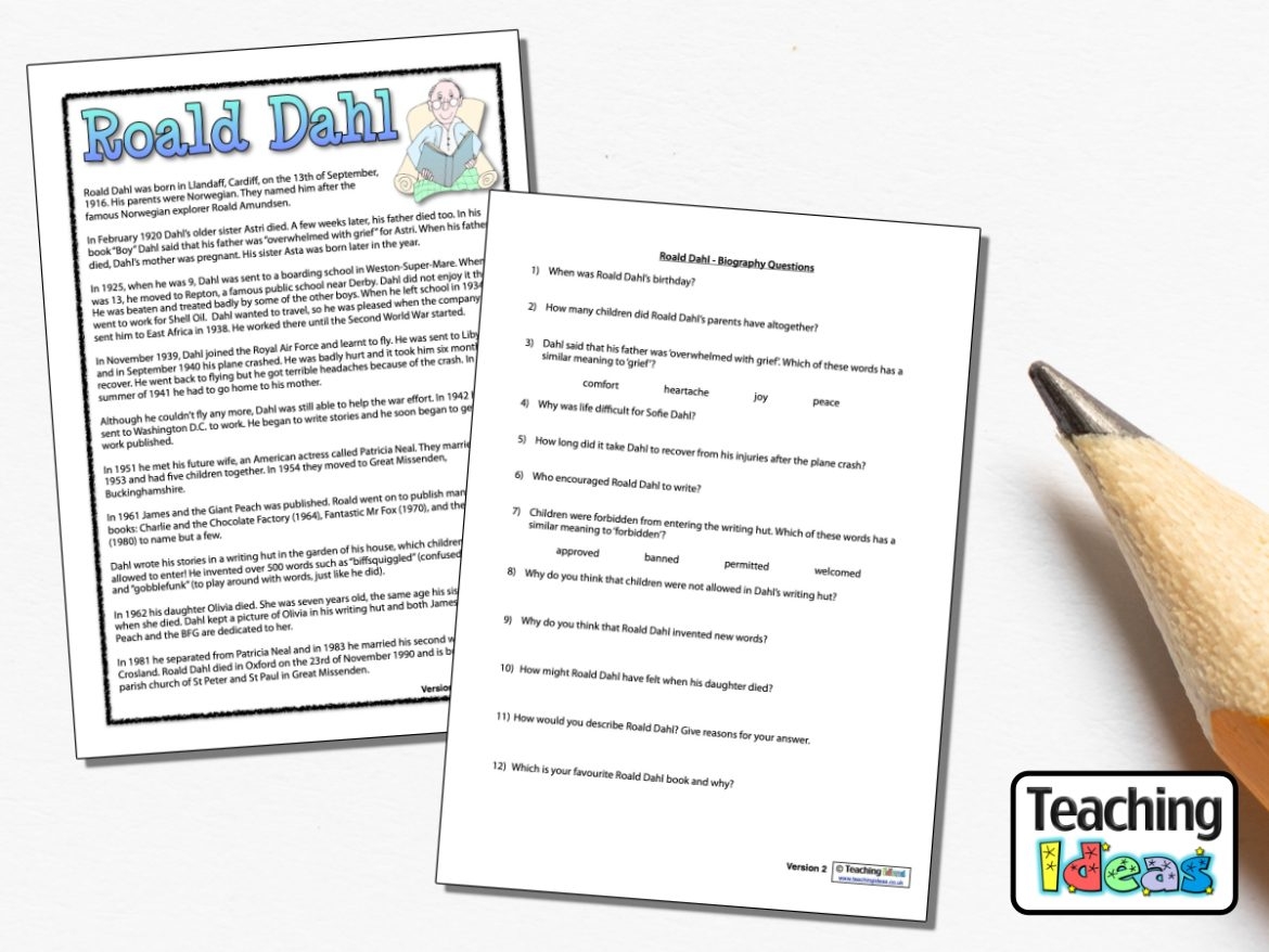 Roald Dahl Biography With Comprehension Questions Teaching Ideas