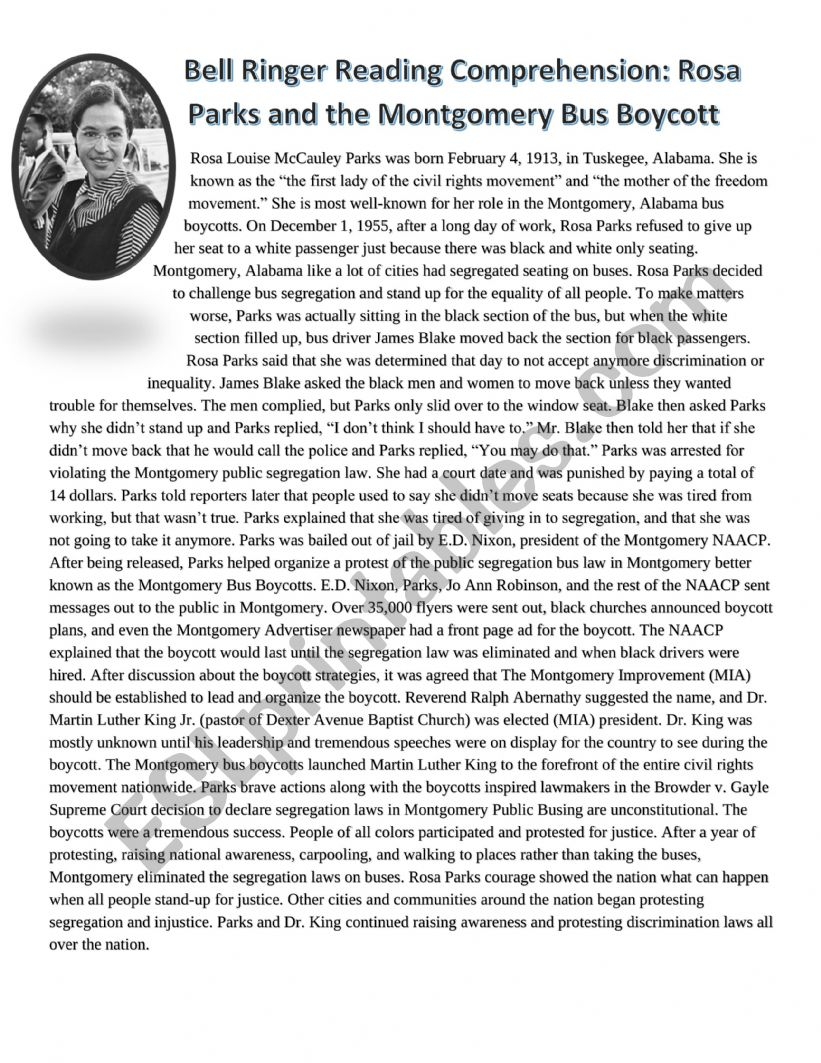 Rosa Parks Reading Comprehension ESL Worksheet By Mohamed 93