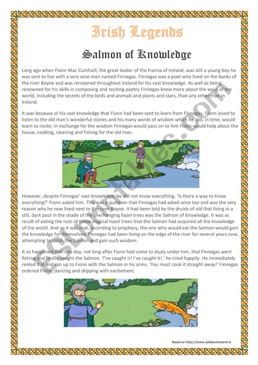 Irish Legends Salmon Of Knowledge ESL Worksheet By Tomsmom