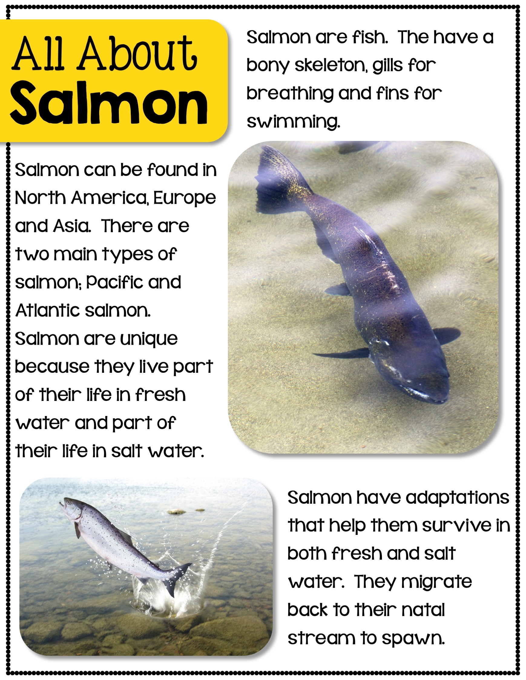Salmon Reading Comprehension Worksheets