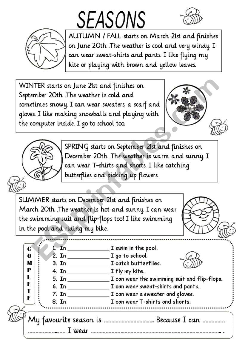 SEASONS READING COMPREHENSION ESL Worksheet By Natysalda