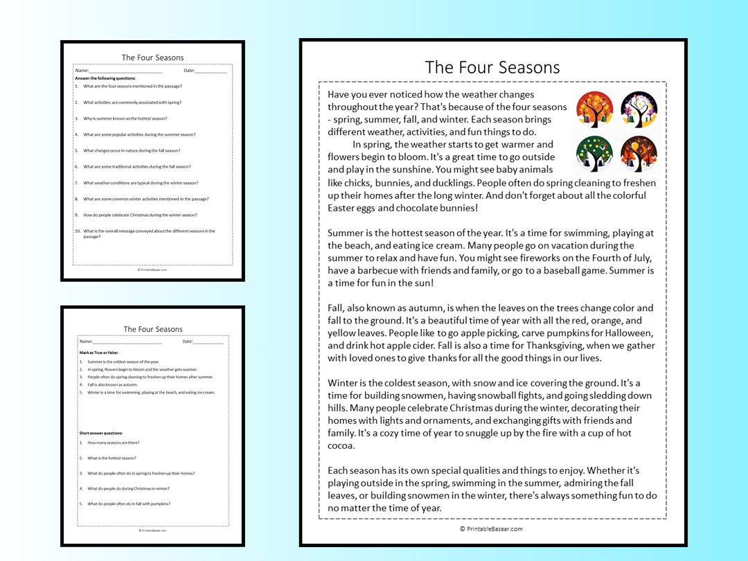 Seaons Reading Comprehension Worksheet
