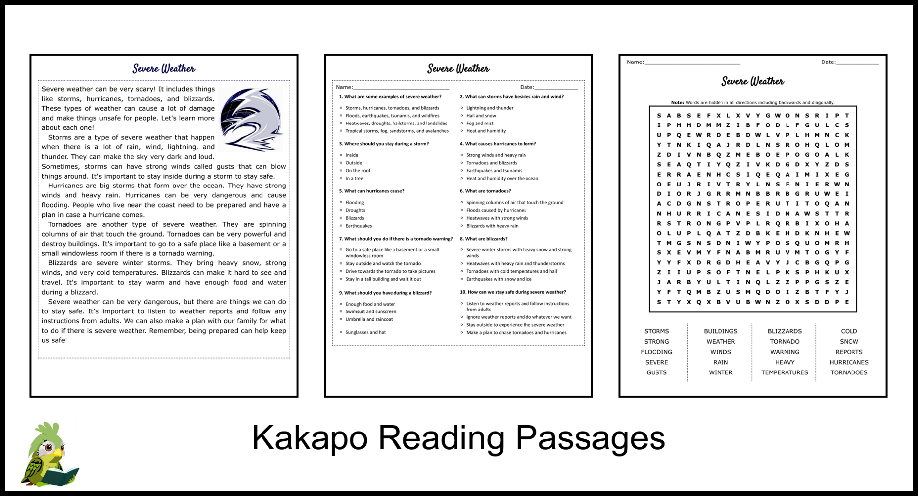 These worksheets cover a variety of topics related to severe weather, including hurricanes, tornadoes, blizzards, and more. Each worksheet includes a passage about a specific type of severe weather, followed by comprehension questions to test students’ understanding of the material.