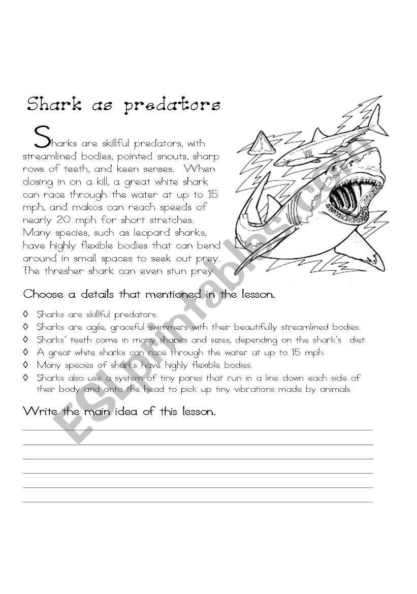 Sharks As Predators ESL Worksheet By Olgajmart