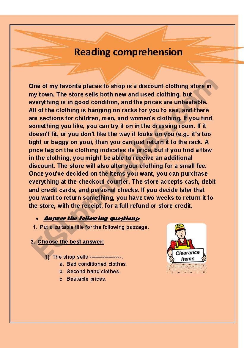 This worksheet is designed to help you practice your reading skills by presenting you with engaging scenarios related to shopping. From choosing the right clothes to finding the best deals, each passage will challenge you to think critically and analyze the information provided.
