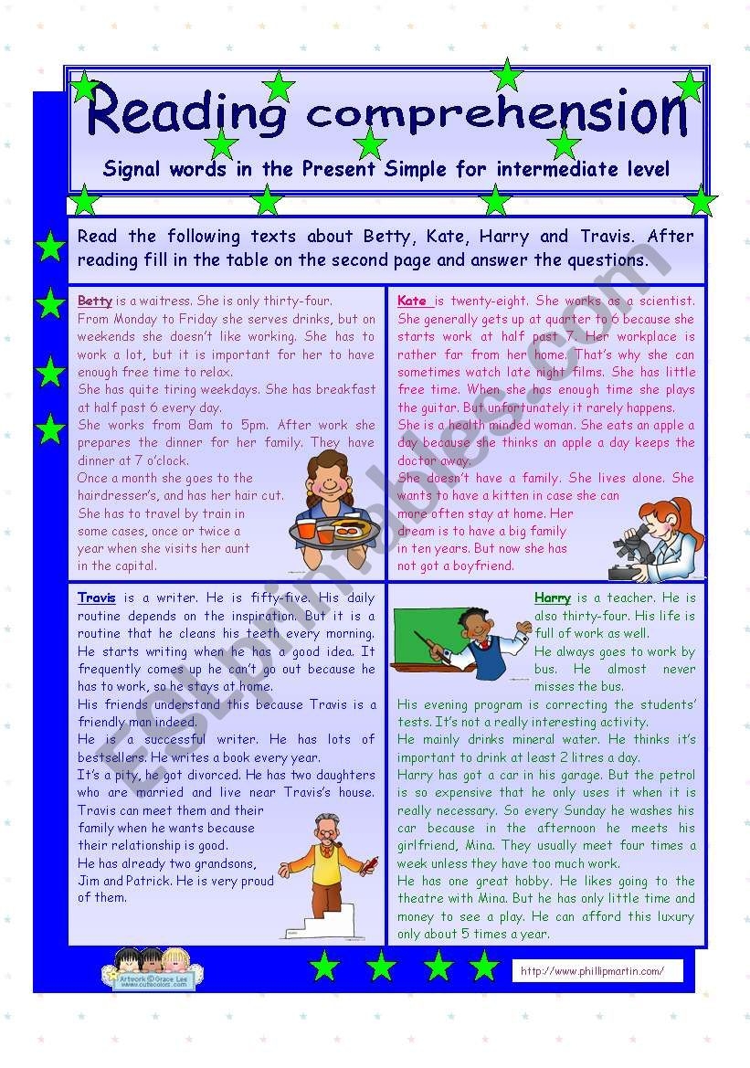 Reading Comprehension Signal Words In The Present Simple Tense For Intermediate Level 2 Pages 3 Tasks Key Is Included Fully Editable ESL Worksheet By Zsuzsapszi